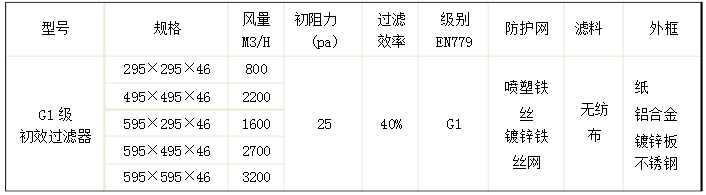 G1級紙框初效空氣過濾器簡述:折疊式初效空氣過濾器適用于空調(diào)系統(tǒng)的初級過濾,主要用于過濾5m以上塵埃粒子。初效過濾器有板式、折疊式、袋式三種樣式,外框材料有紙框、鋁...