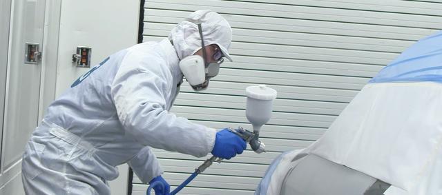 1、檢查鈑金修復的平整度:首先對要噴漆的部位進行檢查是否平整,擦干凈沒有鈑金的噴漆部份,檢查是否有凹陷。2、打磨處理需要補土的部份:用砂輪機將鈑金邊緣進行處理,用砂紙將鈑金周圍磨出羽狀邊,再用砂紙打磨舊漆面,擴將欽金周圍培出羽狀邊,冉用砂紙打若舊涂面:擴大補土的范圍。3、清潔涂油打磨完成后,清洗干凈打磨位置及噴漆位置。4、中涂,盡量控制中涂底漆在較小的范圍,并注意邊緣位置要漸進,不要成臺階狀。5、打磨中涂,待中涂底漆干燥固化后,用砂紙打磨中涂底漆,并準備補土。6、補土,將低凹處的汽車表面用原子灰將其補平,待干打磨。7、研磨,根據不同的表面形狀選擇不同的打磨方式后將原子灰的邊緣與原車舊漆平穩過渡至原車的流水線要求。8、噴底漆 或刮填眼灰對補土處進行噴涂底漆或刮填眼灰并平整原子灰的一些小孔和涂物損壞處。9、底漆打磨,對底漆或填眼灰進行打磨,平整后用砂紙擴大打磨范圍,增強新漆面在舊漆膜上的附著力,完成打磨后便可進入噴漆前的準備。10、吹水遮蔽。對要噴漆的范圍內所有的邊緣接口,用壓縮空氣的方式將邊縫內的水吹干,對不噴漆的部位進行遮蔽。